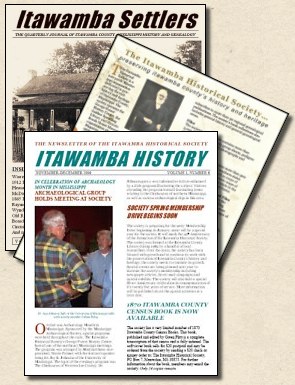The Itawamba Historical Society's membership is composed of family researchers from all across the United States. All members of the society receive Itawamba Settlers magazine, the 40-page quarterly devoted entirely to Itawamba County, Mississippi genealogy and history. All members who join within the year receive all current year back issues. To join the Itawamba Historical Society, simply send your membership dues to: The Itawamba Historical Society Itawamba Settlers is mailed 4 times per year bulk rate, the first week of March (Spring Issue), June (Summer Issue), September (Fall Issue) and January (Winter Issue). If you join within the year after March 1, you will receive your current year back issues at the next scheduled mailing. Membership Categories |