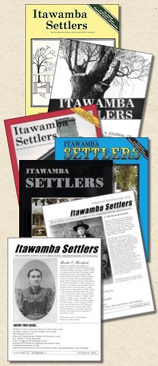 Itawamba Settlers (ISSN 0737-7932), the quarterly journal of Itawamba County, Mississippi genealogy and history. This approximately 40-page quarterly membership